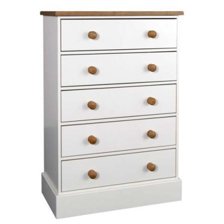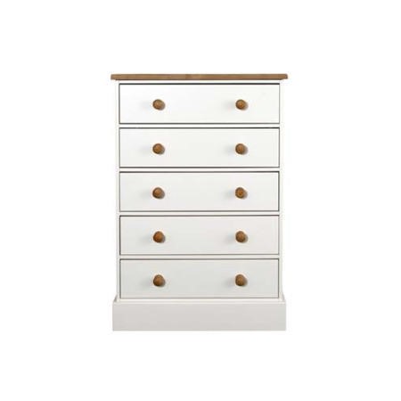 With five wide drawers, this roomy Balmoral White 5 Drawer Chest will house an array of clothes. Making everything easy to find, you can look forward to a tidier, more homely bedroom with this piece of furniture.