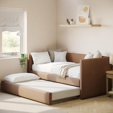 Some guest beds above even come with two mattresses included, so you’re ready to go from the moment it arrives. Pull-out guest beds are easy to use and sturdy, too. None of that wobbly, creaky nonsense. And if you fancy something a bit smarter, try a single guest beds with soft upholstery or boucle fabric. Comfy enough for guests, stylish enough for everyday life.
