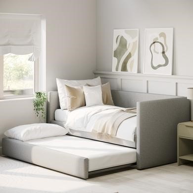 A guest bed with trundle is a proper space-saver. It looks like a regular single bed, but there’s a second bed tucked underneath that rolls out when you need it. Great for growing families or when the living room moonlights as a guest room. Once your guests head off, just slide it away. No hassle, no bulky spare bed taking up floor space.