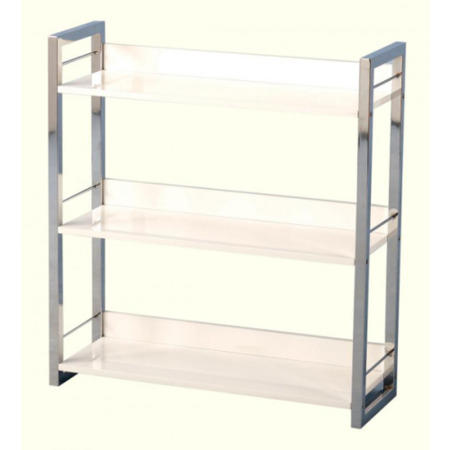 The Charisma High Gloss 3 Shelf Bookcase in White combines cool modern style with glossy white and chrome finishes. The sleek angles will frame your book collection beautifully or provide ample room for displaying your ornaments. Its smart metallic border and fresh white shelves have a polished confidence, sure to enhance your decor.