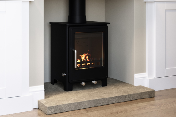 Log burners are a classic choice for real warmth and atmosphere. They burn firewood inside a closed, efficient stove, giving you the charm of a real flame with better heat output than an open fire. Perfect for creating a cosy, rustic feel, they’re loved for their crackling sound and natural heat.