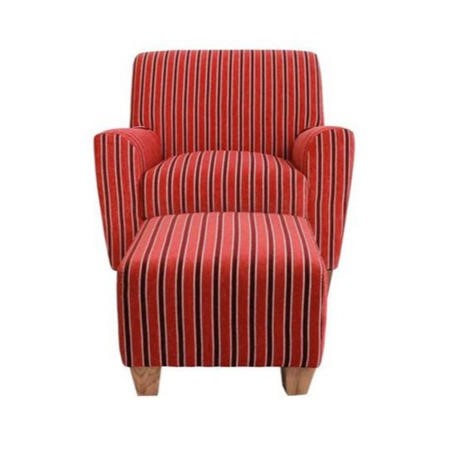 Finished in an excellent striped fabric, the Devonshire Armchair with Footstool in Red is the ideal place to sit back and unwind after a long day. The cushioned seat and gently rounded arms provide support whilst the stool allows you to put your feet up and forget your cares. Both pieces feature ash legs.