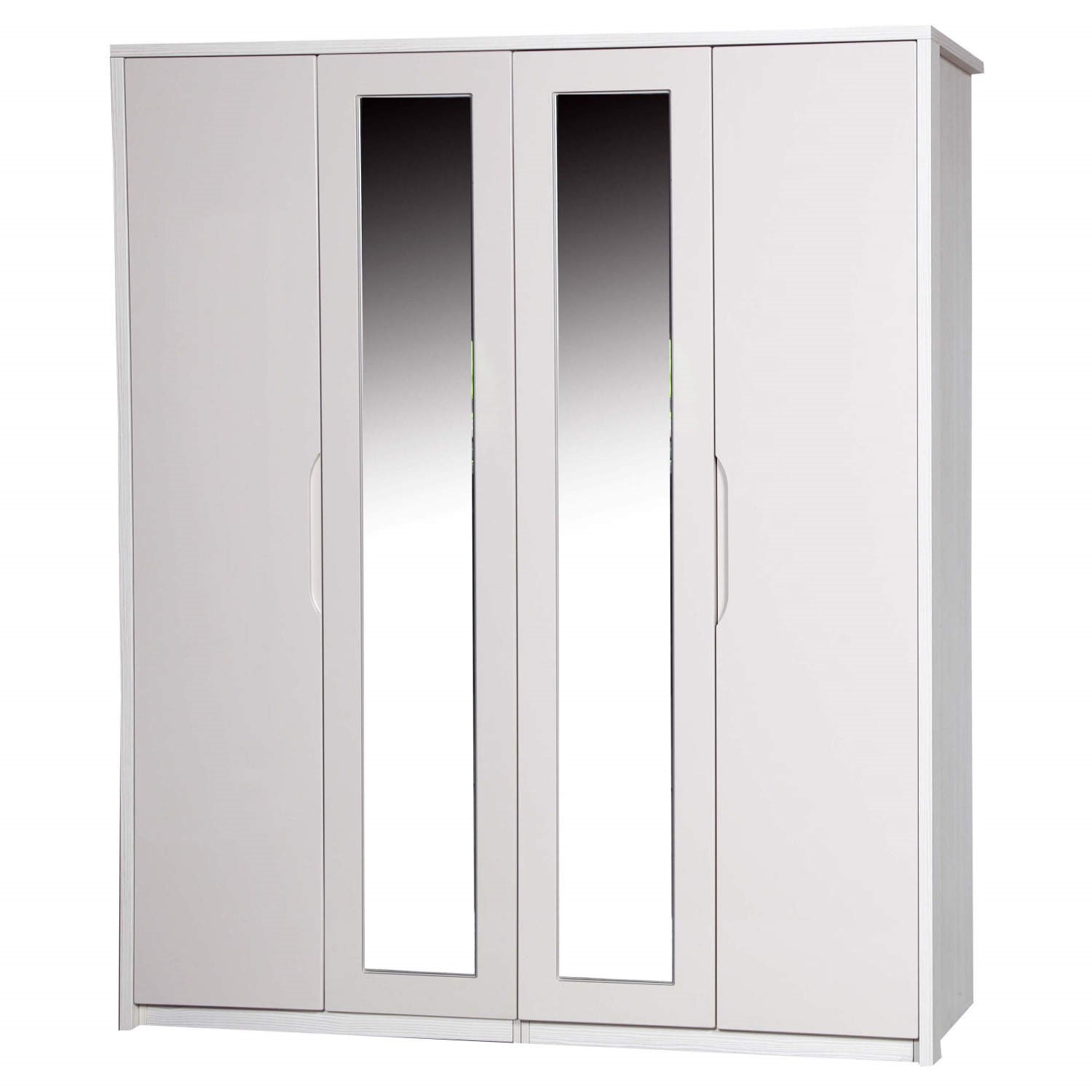 The Andorra 4 Door Wardrobe with Mirrors in White Wood Grain Effect with Sand Gloss offers essential bedroom storage for your clothes. The white wood grain effect body and sand gloss doors ensure that it will suit a wide variety of modern decors, whilst the sleek recessed handles complete the clean look. The doors feature a soft close mechanism as an indication of quality.