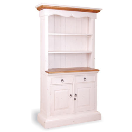 With 2 cupboards, 2 drawers and 3 shelves you can keep your kitchen or hallway clutter free with the French chic 2 Door Dresser. Made from solid pine, it features excellent carved detail and a painted finish in a wide choice of colours. Given aslightly worn touch, this unit has an excellent pre-loved feel and highlights its quality with the pine accents and worktop. This is the versatile finishing touch that you have been searching for.