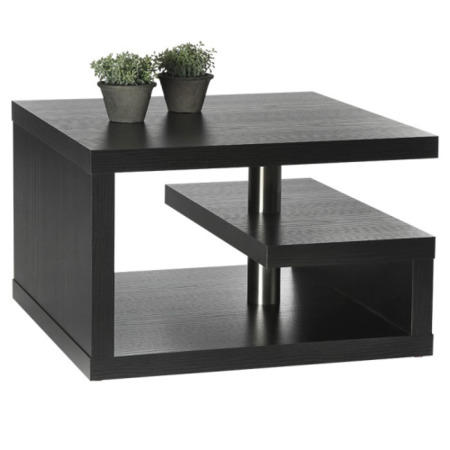 The Designa lamp table is a an unusual design which will create a great, but not overpowering feature in any room. A square table top offers plenty of room for plants, lamps and cups of tea. A base and a small shelf are created in this unusual geometric design, giving you more storage or display space. The deep black is complimented by the bright, shiny chrome pole running through the piece, emphasising the modern twist to this piece.
