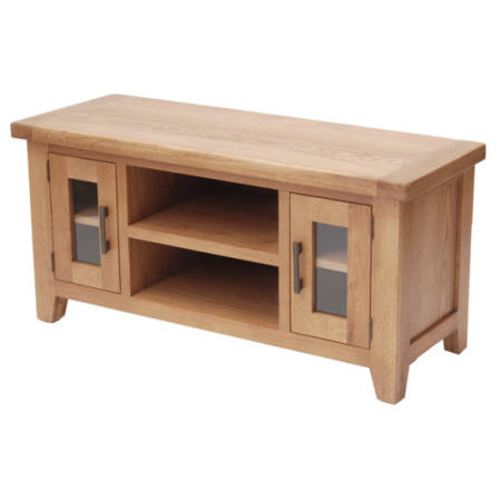 The Hampshire Large TV Unit will comfortably fit most home television or hi-fi units on its ample surface. The slightly rustic finish will contrast nicely with your high-tech gadgets for an eye catching living room focal point. The front is stylishly finished with 2 glass door cupboards whilst a handy shelf runs the length of the unit to help you maintain the clutter free look.