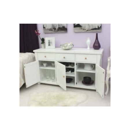 Perfectly formed and finished, the Hampton White Solid Ash 3 Door 3 Drawer Sideboard is a host's dream ticket. You'll have ample room for crockery and cutlery while the wine rack will keep your liquor stashed away.
