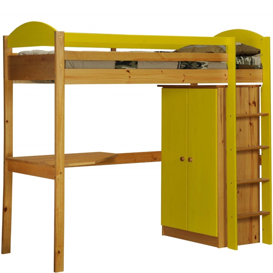 Very versatile, the ladder on the Maximus High Sleeper Bedroom Set in Antique Pine and Lime can be fitted on either the left or right hand side. Under the bed sits a 2 door tallboy for storage purposes and a fitted corner desk that ensures that homework always gets done.