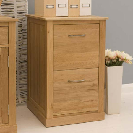Treat your home office to a space-saving invention. The Mobel Solid Oak 2 Drawer Filing Cabinet is designed to satisfy all your working needs. Two drawers hold foolscap files that are easily accessed via smooth metal runners so all your papers can be neatly hidden away. Plus, this filing cabinet is the same height as the Mobel desks for extra worktop space.