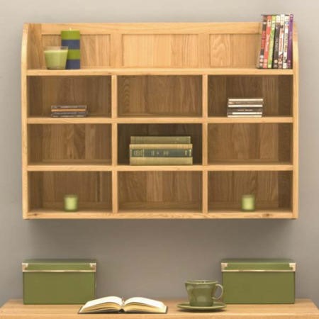 Treat your living room to a classic furnishing. The Mobel Solid Oak Reversible Wall Display Unit is the perfect accompaniment to your study area. With nine storage areas plus a large display shelf, this unit is ideal for CDs, ornaments, books or office stationery.