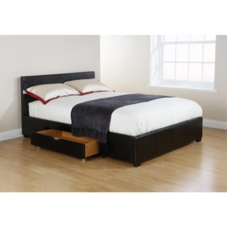 The Oxford Upholstered Faux Leather Double Bed Frame with Drawers stands out from the rest of the Oxford collection thanks to its stunning dark upholstery. Featuring drawers for storage, and flat slats to support your mattress it's a truly exceptional bed, and with a low foot end is sure to fit in the more compact spaces.
