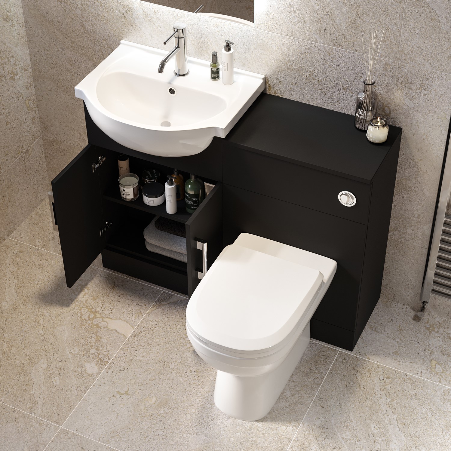 Enhance your bathroom with this modern 1050mm Classic combination toilet and sink unit, designed to deliver both contemporary style and everyday practicality. Finished in bold matt black, it creates a striking yet refined focal point while adding depth and contrast to modern bathroom spaces. The all-in-one design neatly combines a vanity unit and toilet, concealing all pipework and cistern components for a clean, streamlined finish. Designed with flexibility in mind, this toilet and sink unit is reversible, meaning you can choose which side the toilet unit and pan sit to suit your bathroom layout. You can also position the vanity unit and toilet unit separately if you wish, giving you greater freedom when planning and installing your bathroom.