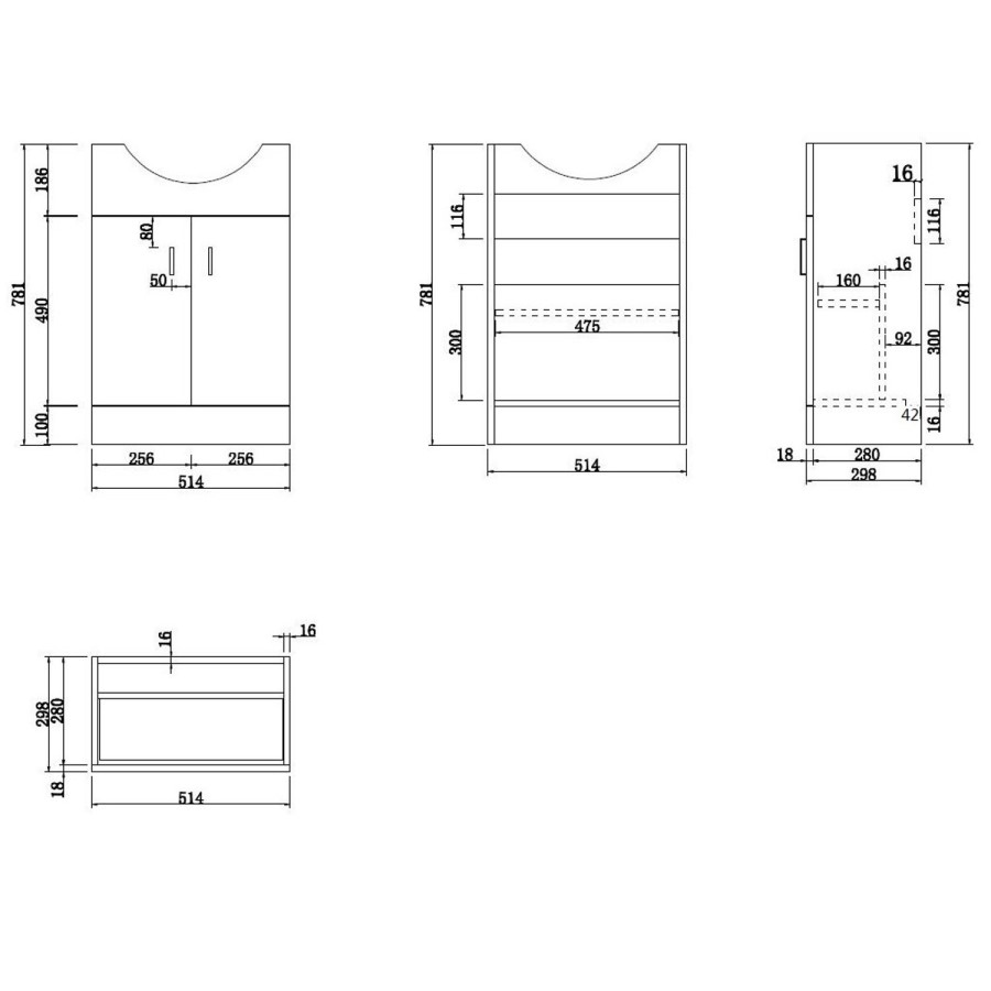- Vanity Unit Dimensions: H840 x W550 x D420 mm (give or take -/+ 3mm per measurement)