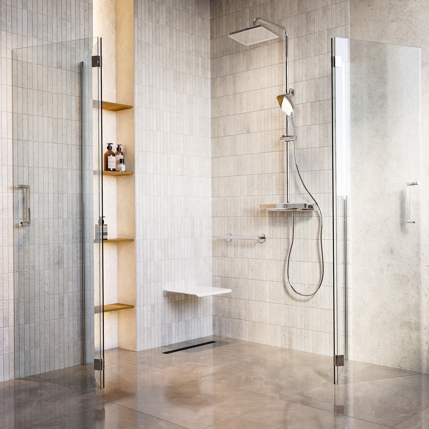 Mobility-Friendly Access: Created for users with reduced mobility or assisted bathing needs, with compatibility for shower seats and grab rails.