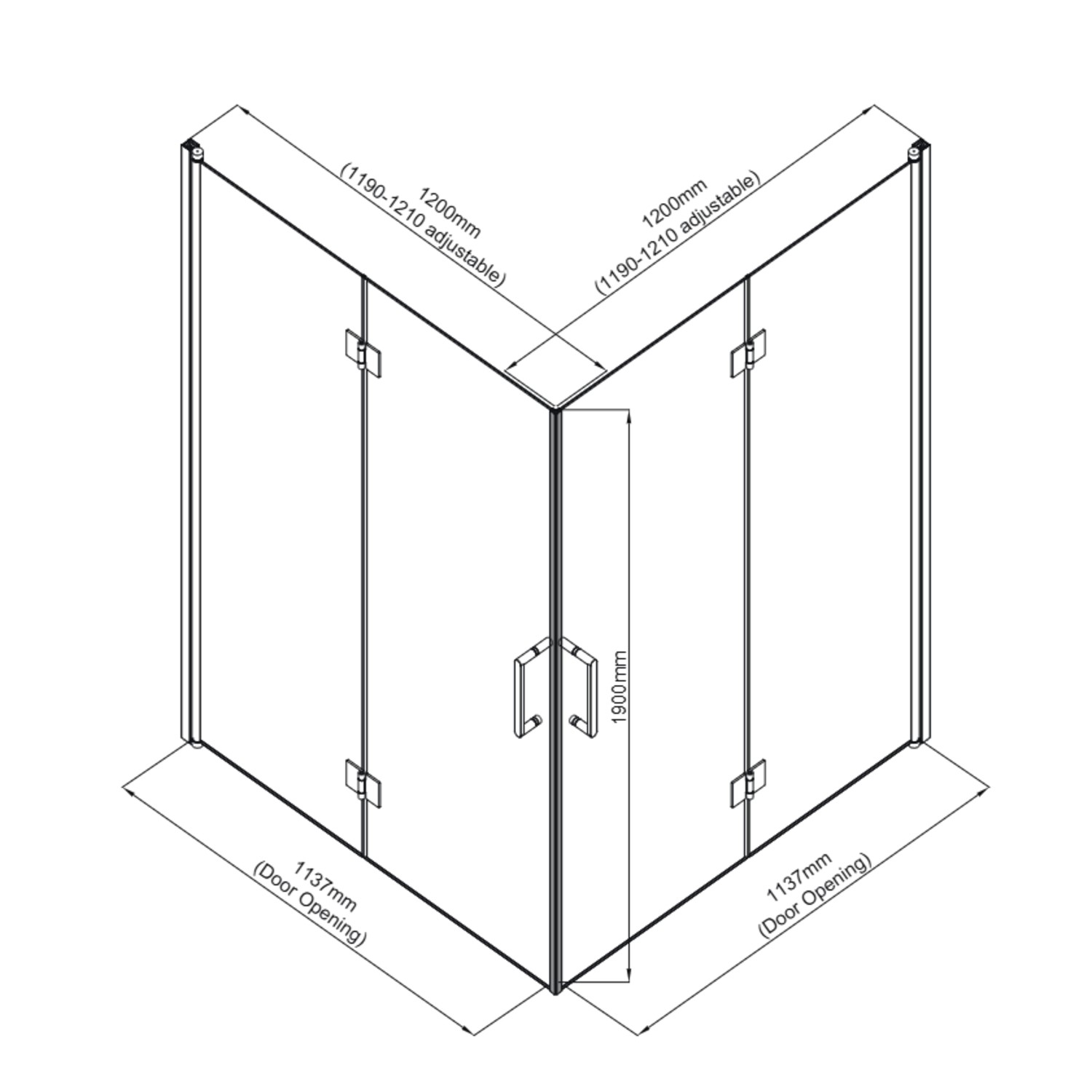 - Footprint: Square enclosure – 1200 x 1200mm