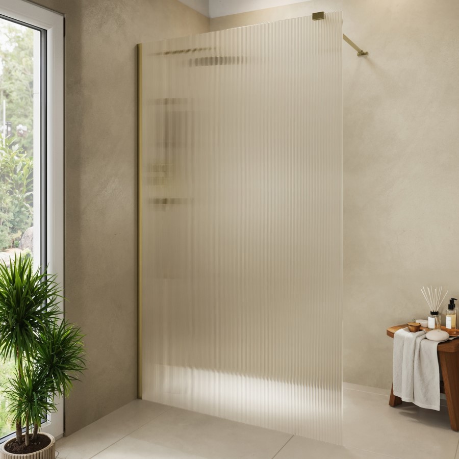 The Matira Walk-In Fluted Glass Shower Screen in Brushed Brass is the perfect way to bring elegance and practicality into your bathroom. Featuring a beautiful fluted glass texture and frameless design, this single-panel screen enhances the sense of light and space in your shower area, while offering subtle privacy.