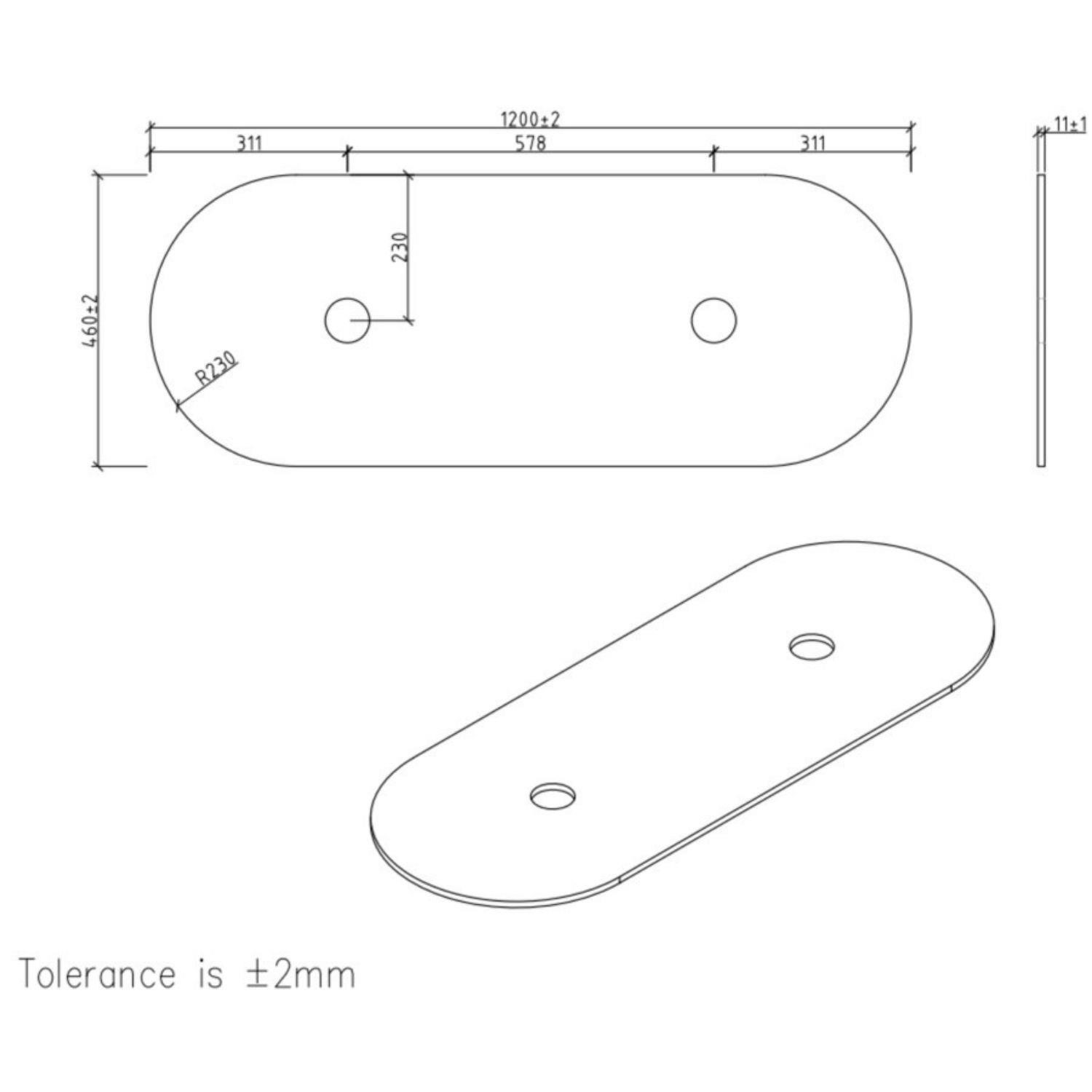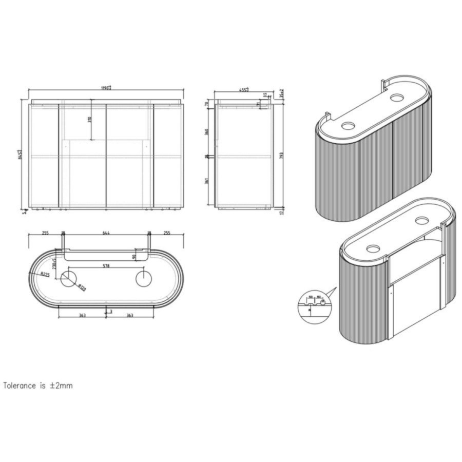 - Vanity Unit Dimensions: H845mm x W1200mm x D460mm (- Please Note, the width of this worktop measures 1200mm due to a 10mm overhang, however the main unit width is 1190mm. The depth of this worktop measures 460mm due to 5mm overhang, however the main unit depth is 455mm.)