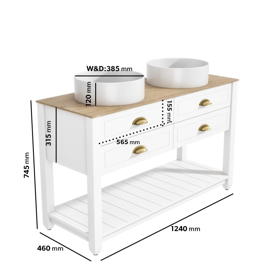 Manufactured to a high standard, the high-quality ceramic countertop basin is included; however a tap is not included, allowing you to customise the Kentmere and choose the tap or taps of your choice. No assembly is required; there's just the basin to secure and your chosen tap to install. Also available in a matt white worktop finish and varying sizes.