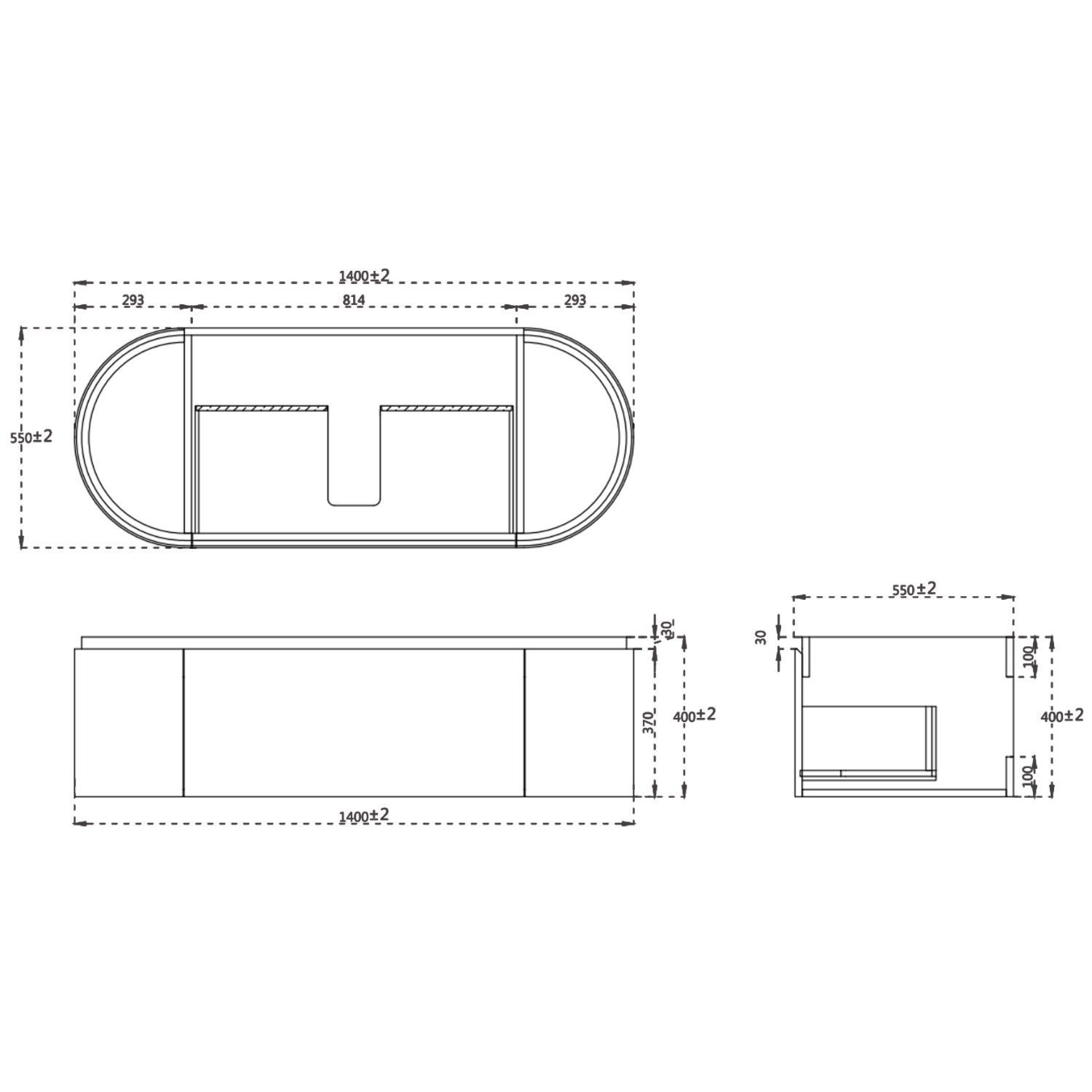 - Overall Basin Vanity Dimensions (including basin): H418mm x W1400mm x D550mm