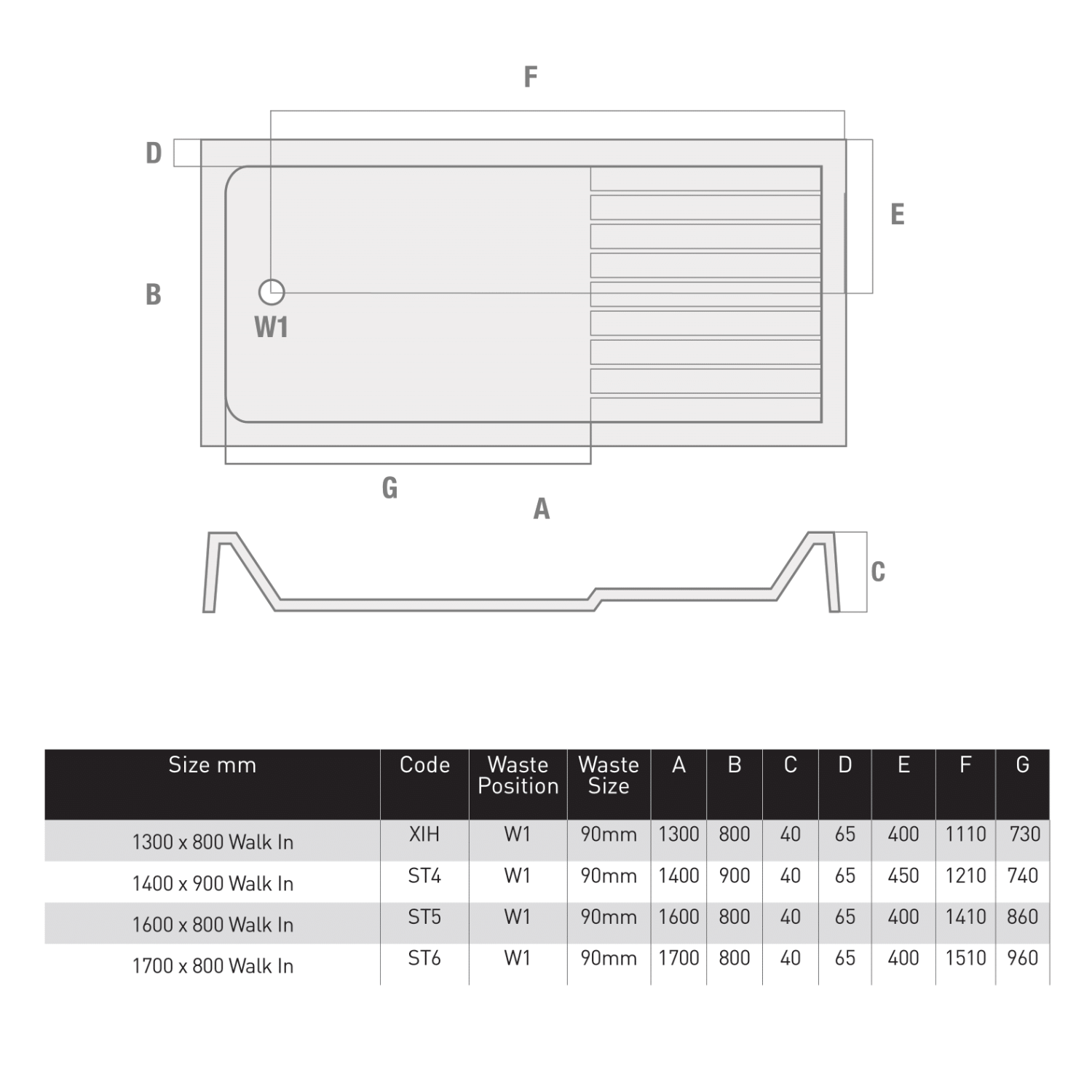 The Purity rectangular shower tray with drying area is the ideal bathroom addition since it is sturdy, sleek, and modern combining luxurious style with function and is available in multiple sizes to give your bathroom a more relaxed appearance.