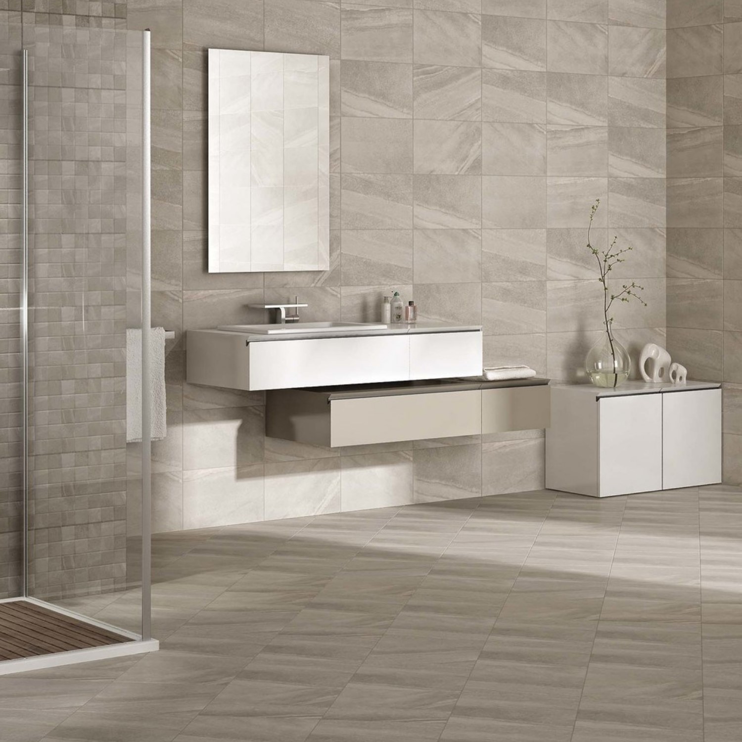 - Soft, matt finish tile in subtle neutral tones.