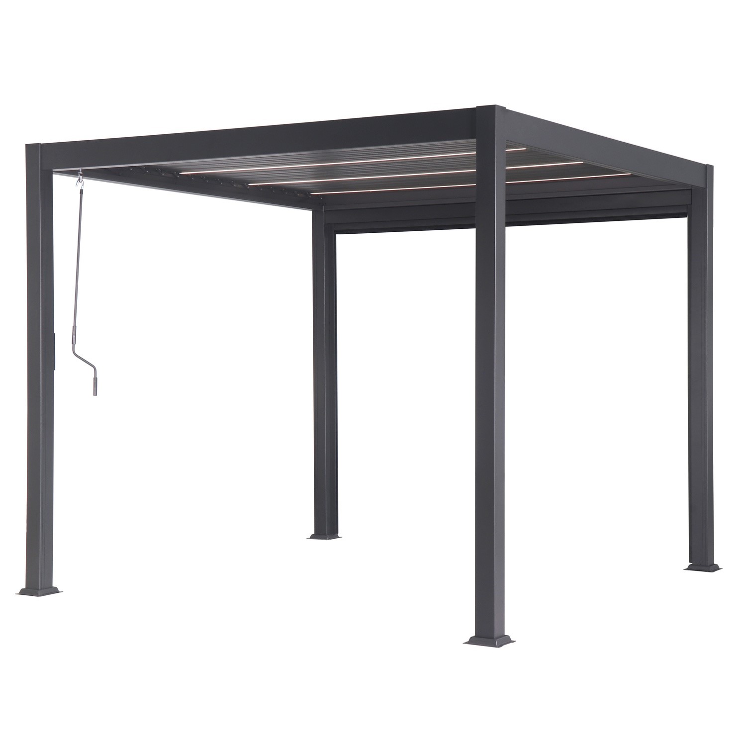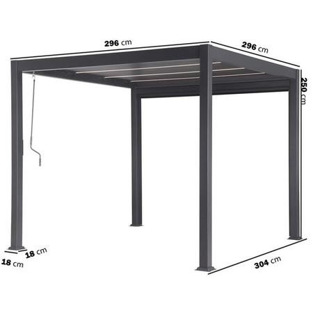 Integrated LED solar lights: Illuminate the space under the louvred roof for a stylish evening ambience. Remote control included with integrated control panel located in the pergola pole.