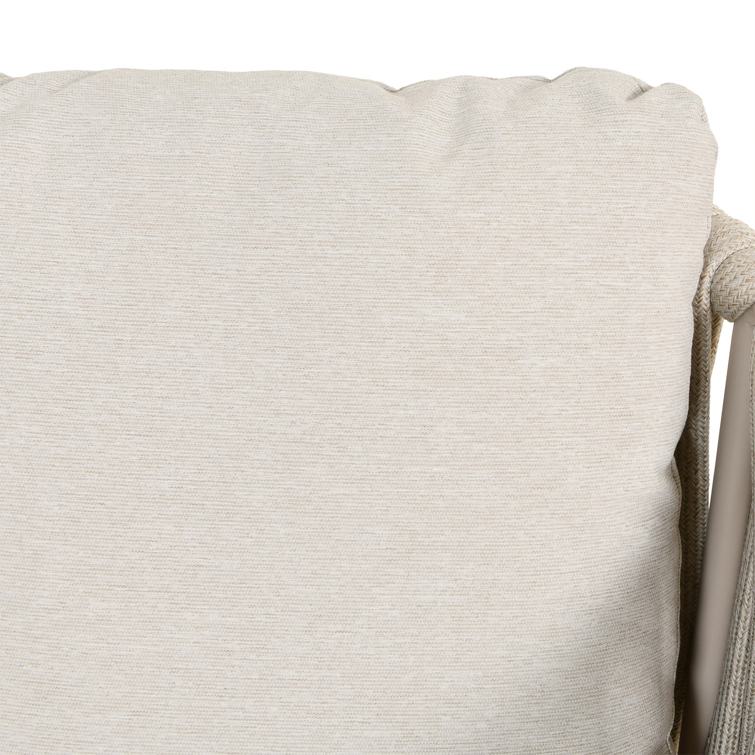 - Material: Synthetic rope rattan, powder coated steel (table / chair frames), glass (tabletop), polyester fabric (upholstery) and foam filled (cushions)