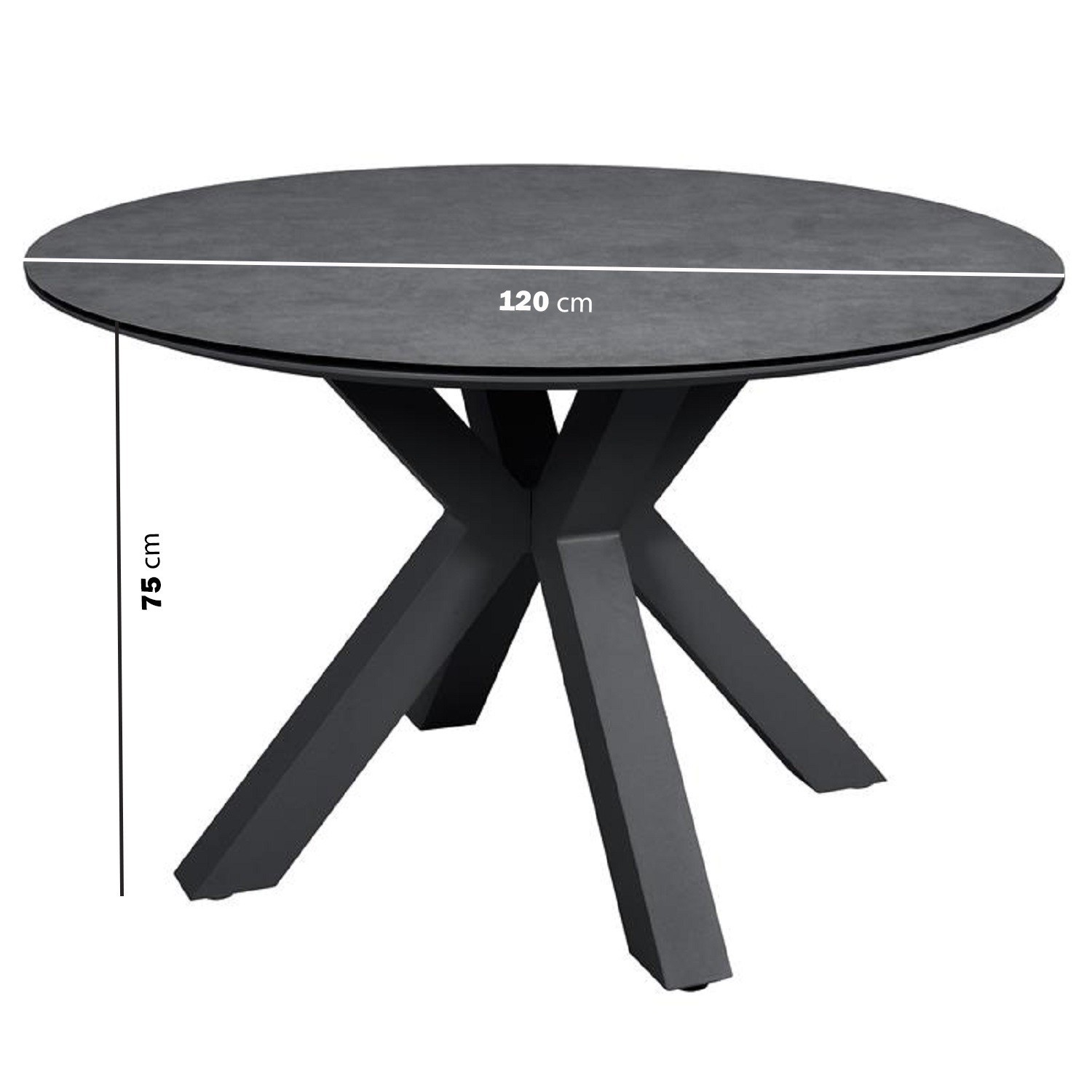 - Table dimensions: W120 x D120 x H75 cm