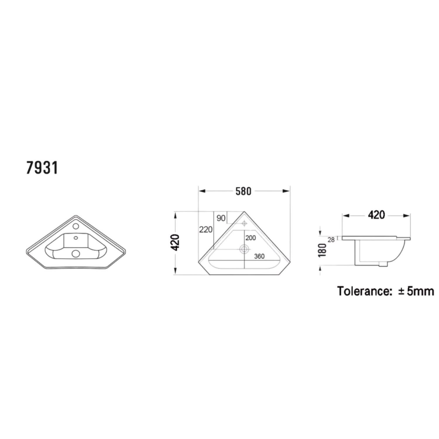 - Overall Basin Vanity Dimensions (including basin): H800mm x W580mm x D420mm