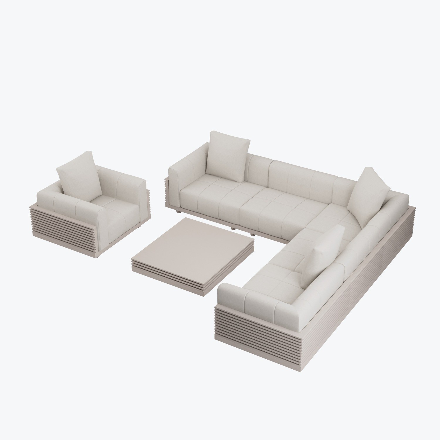 Modular Design: The large L-shaped configuration paired with a coordinating armchair creates a sociable and versatile outdoor seating area.