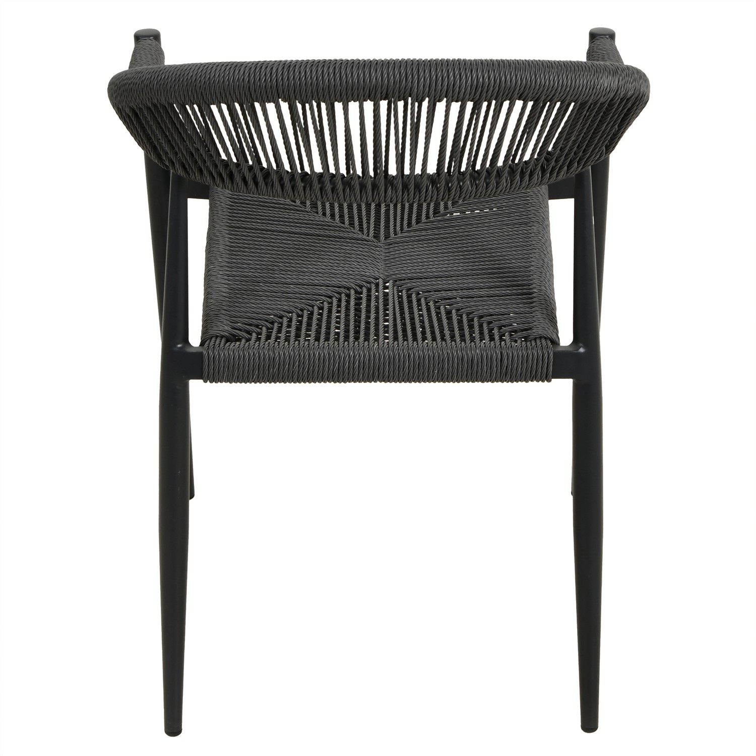 Six Matching Rope Chairs: The set includes six rope-woven dining chairs that combine comfort with contemporary style.