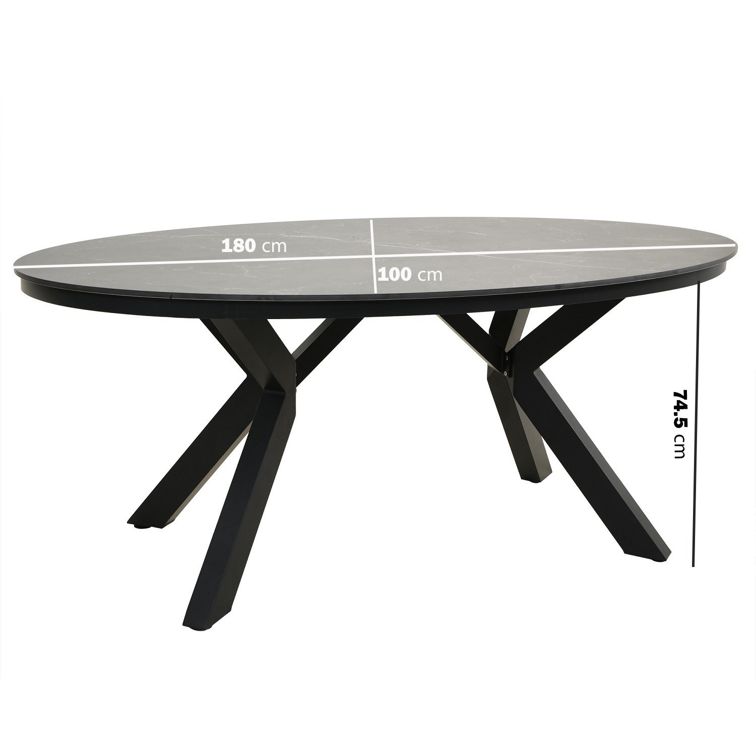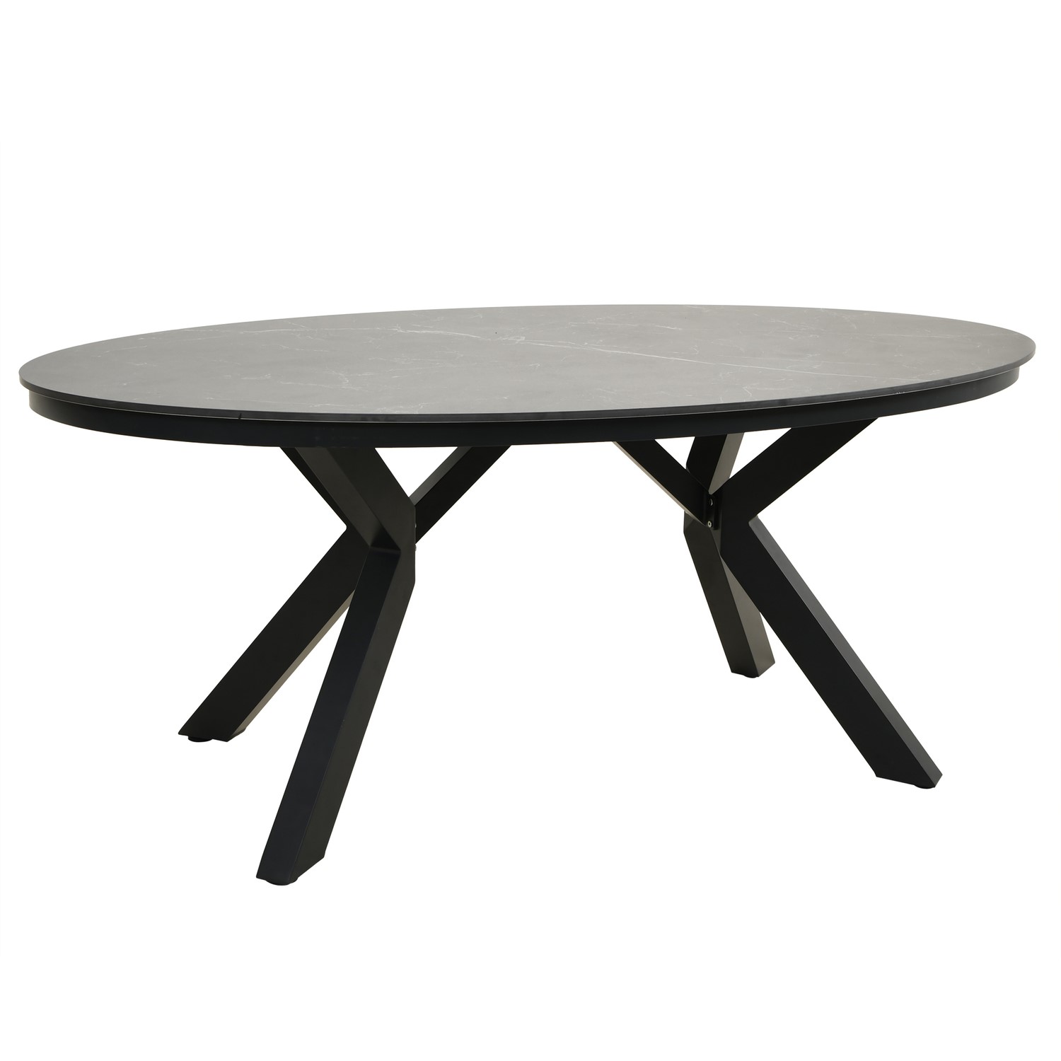 Premium Sintered Stone Tabletop: The oval sintered stone surface delivers a refined look with durability suited to outdoor dining.