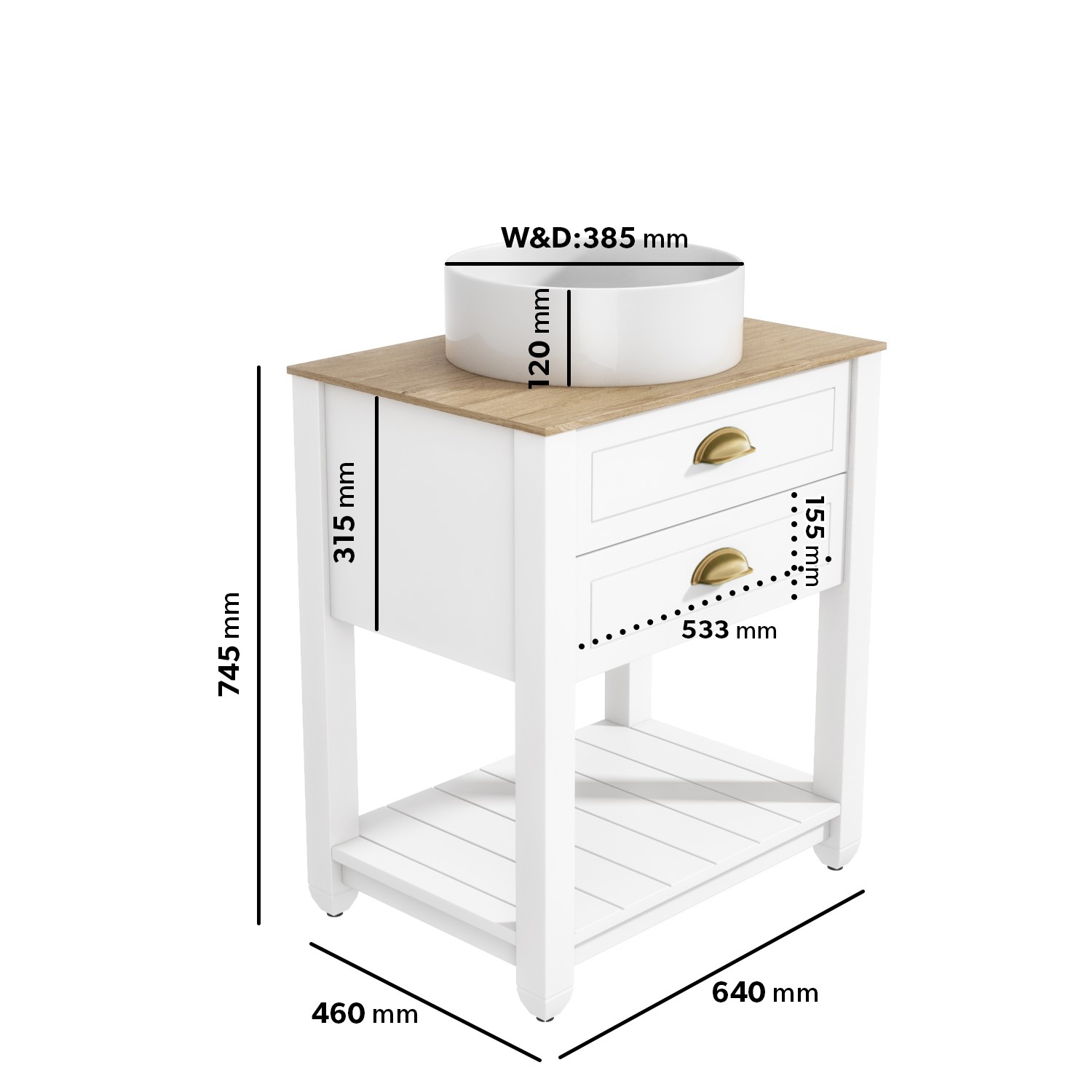 Manufactured to a high standard, the high-quality ceramic countertop basin is included; however a tap is not included, allowing you to customise the Kentmere and choose the tap or taps of your choice. No assembly is required; there's just the basin to secure and your chosen tap to install. Also available in a wooden worktop finish and varying sizes.