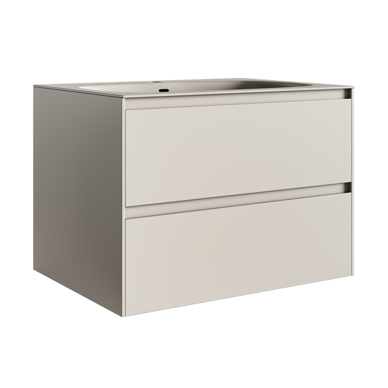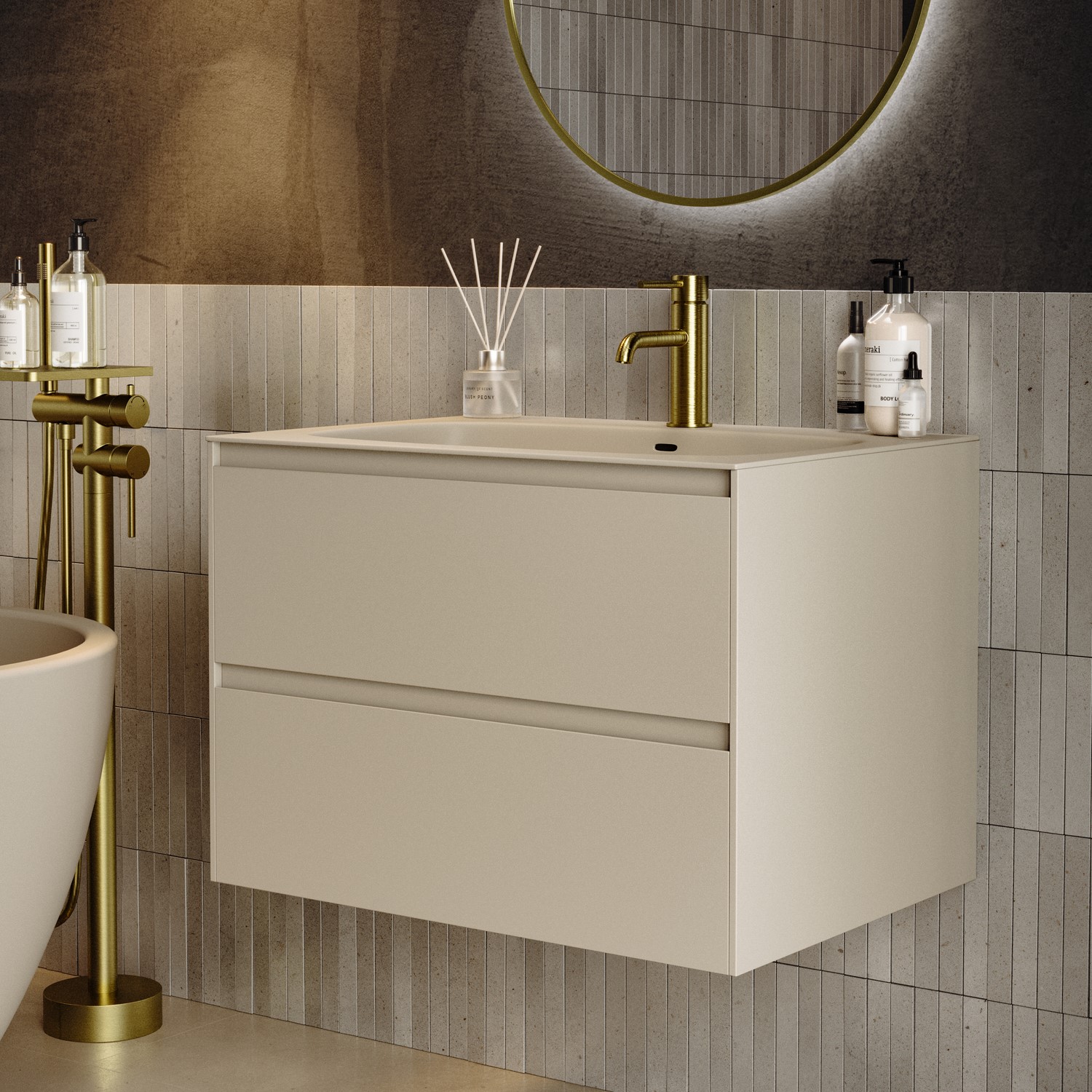 The 700mm Como beige wall hung vanity unit delivers a stylish, modern solution to any bathroom renovation. The floating design frees up valuable floor space, whilst giving a spacious feel to your bathroom. The neutral matt beige tone pairs beautifully with a wide range of finishes, offering versatility and timeless appeal. The unit features two deep drawers with a soft close mechanism, to reduce noise and wear and tear and integrated concealed handles maintain a clean, uninterrupted look.