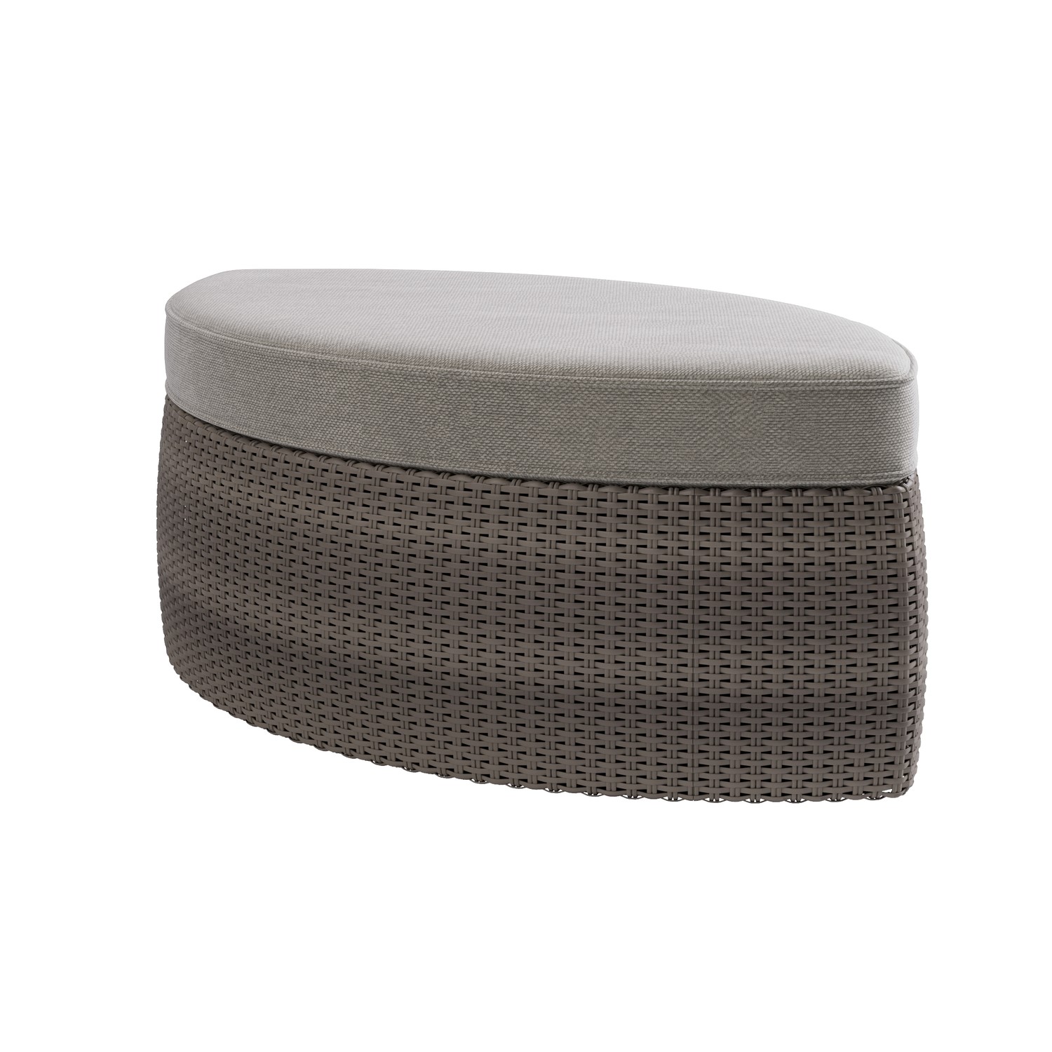 - Finish: Powder coated metal (frame), half round wicker & upholstery