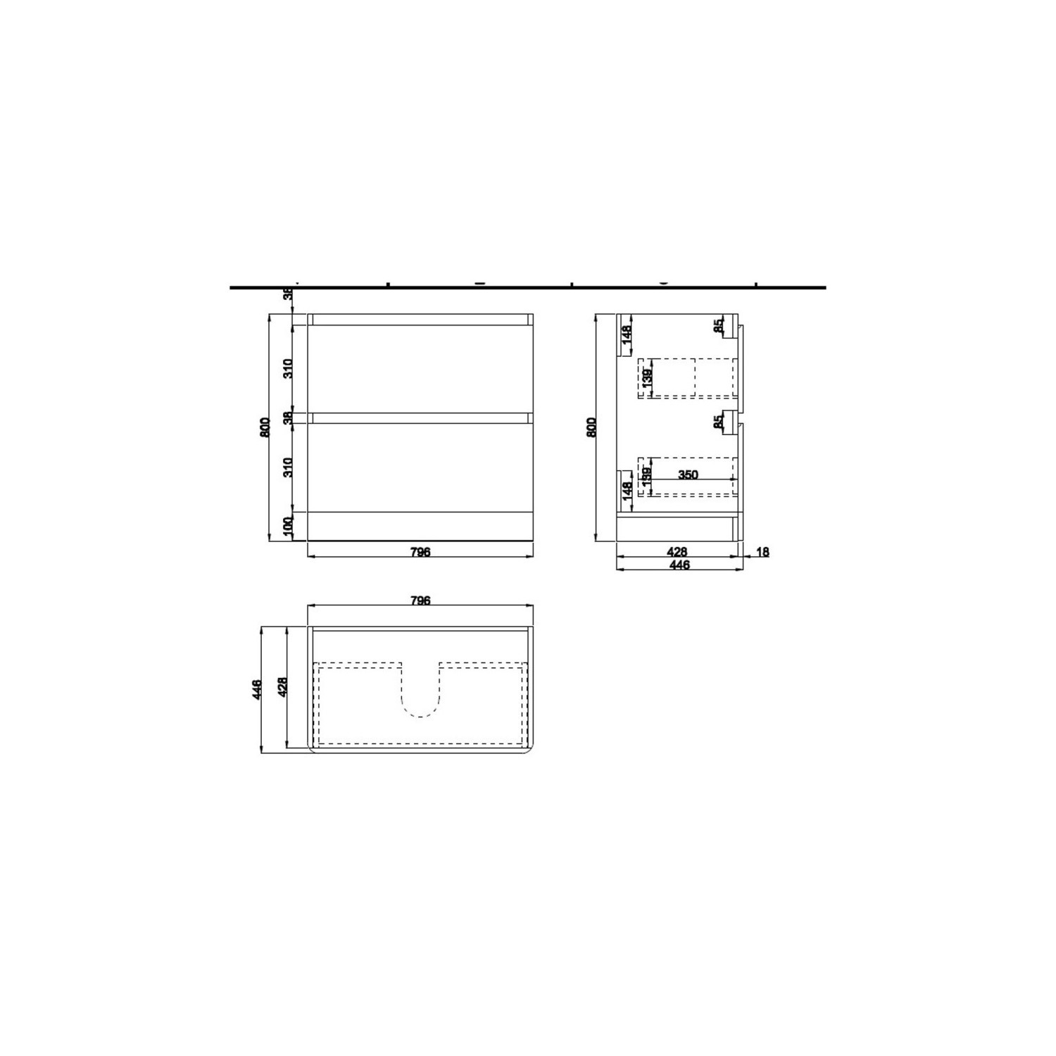 - Dimensions: H800 x W800 x D450mm