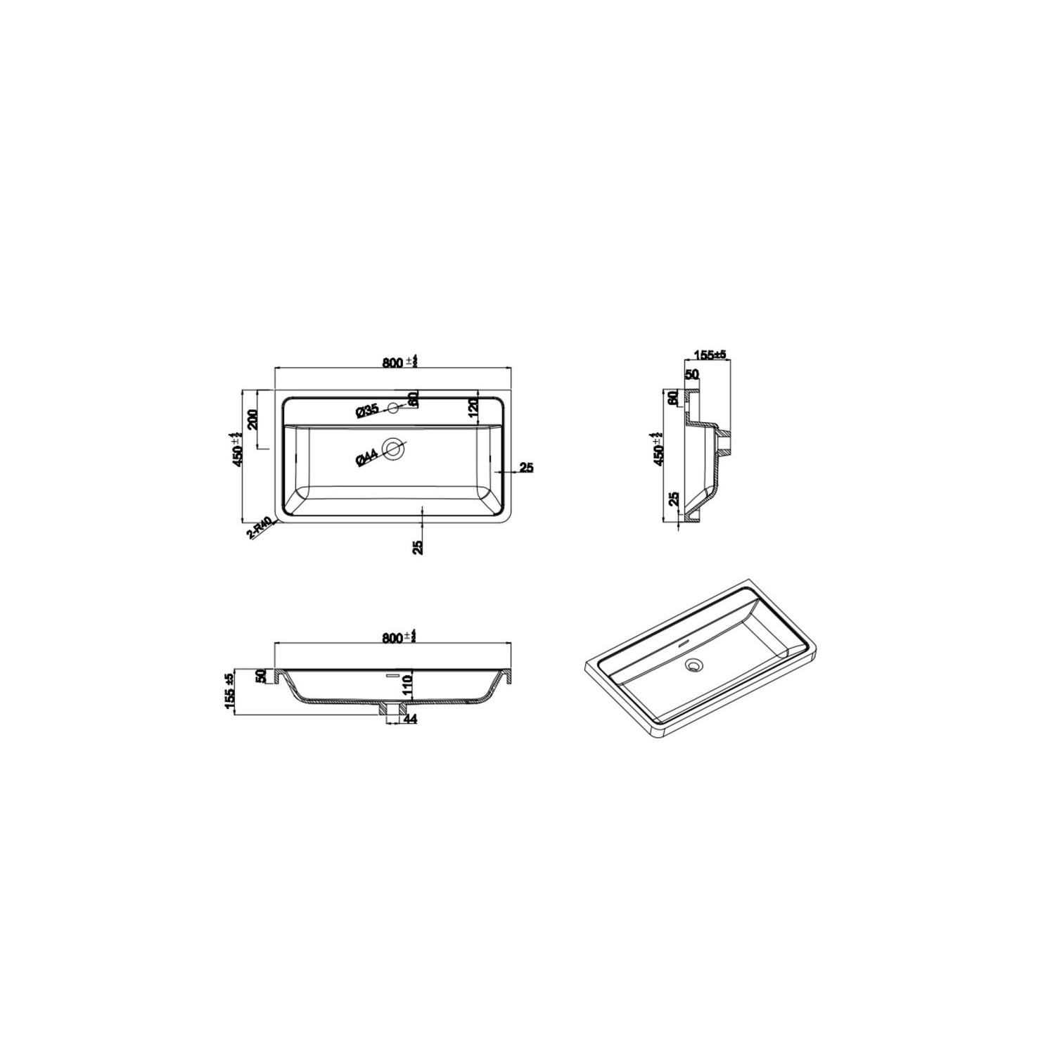 - Basin material: Resin