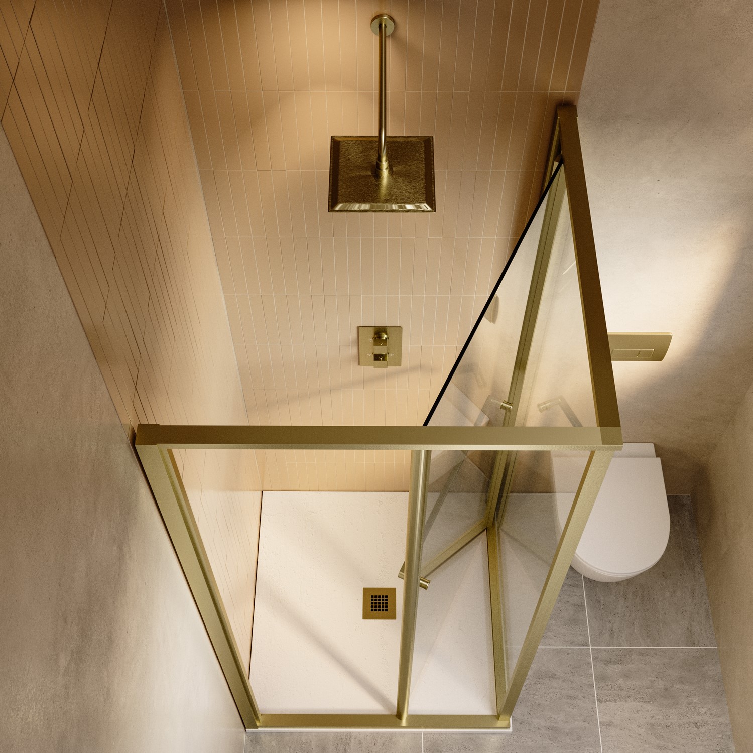 The Infold Sliding Shower Door with Towel Rail in brushed brass is a clever and stylish solution for bathrooms where space is limited. The innovative infold design allows the door to fold inward, maximising external floor space while the integrated towel rail brings additional practicality in one compact feature.