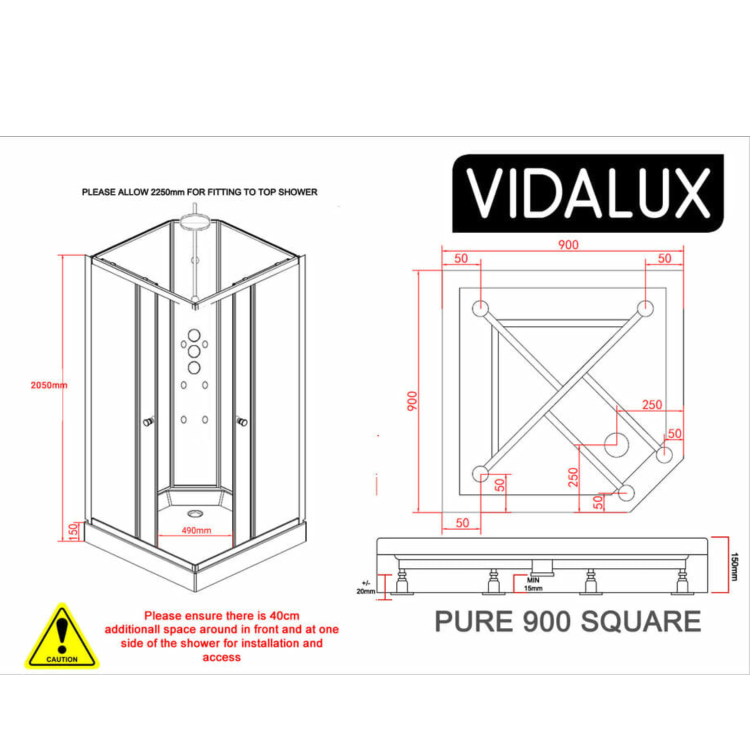 - Shower tray height: 150mm