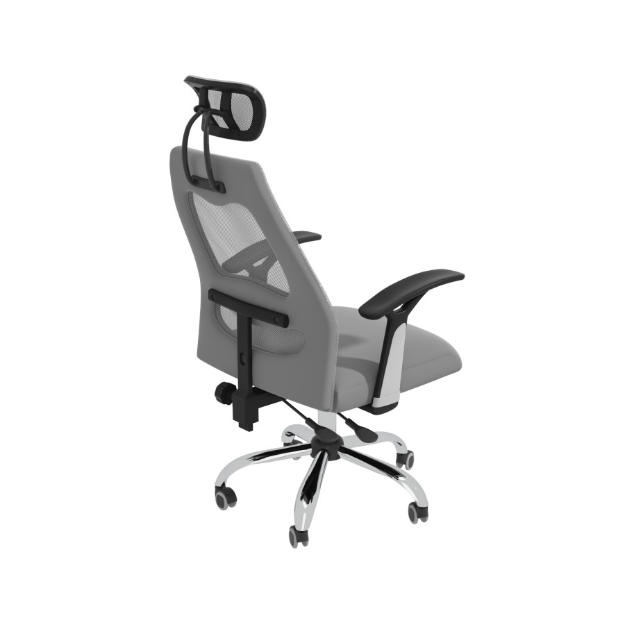 Standing tall, this Albie high back office chair makes the perfect addition to any home office. It has been ergonomically designed for comfort, making it practical for those who work long hours at the desk. The mesh backrest keeps you cool on warmer days and adapts to users of different sizes due to its contoured back support. The headrest helps alleviate neck pain, the armrests offer additional support, and the gas-lift mechanism makes it easy to adjust the seat height. Plus, you'll have added convenience while working thanks to a 360°C swivel and easy manoeuvre castor wheels.