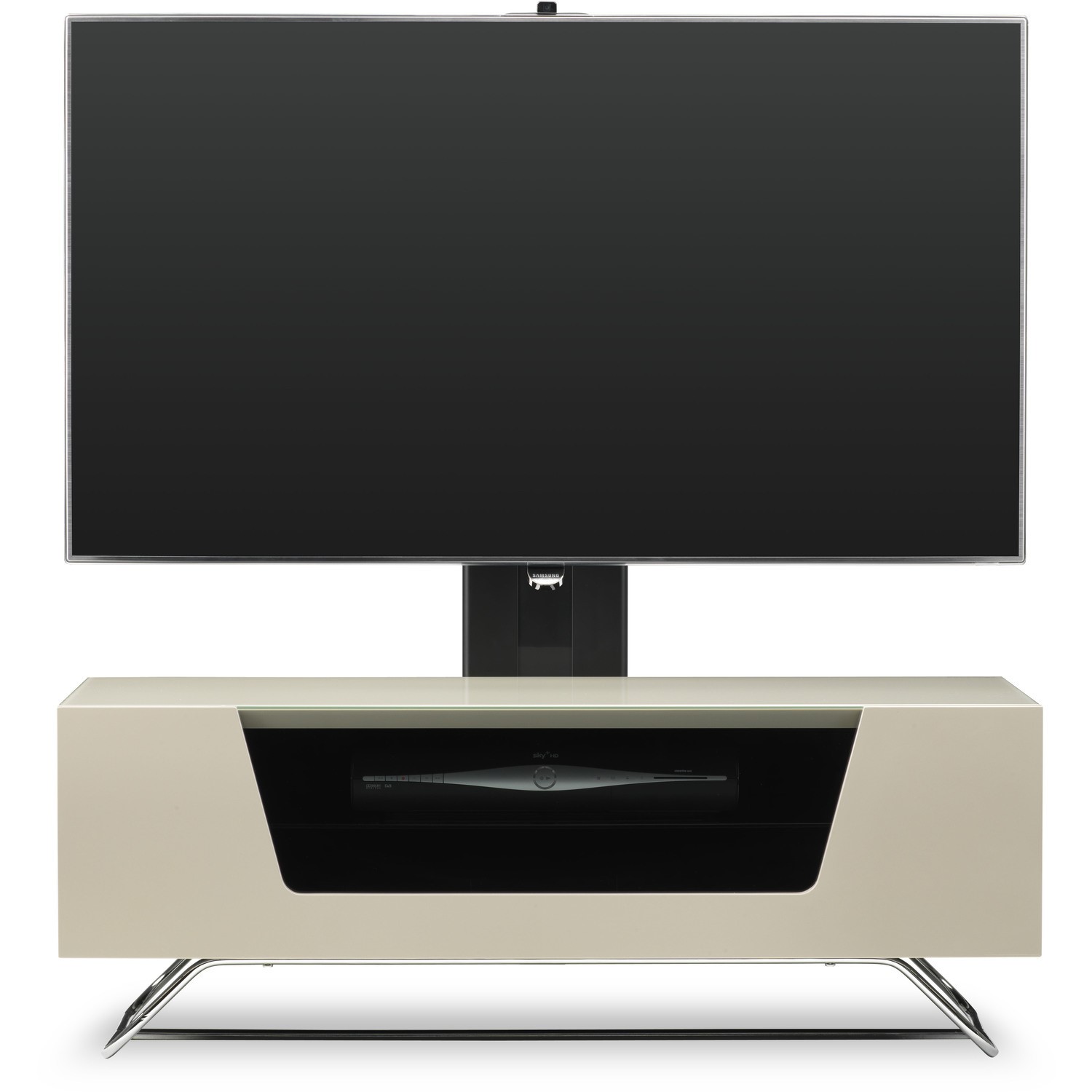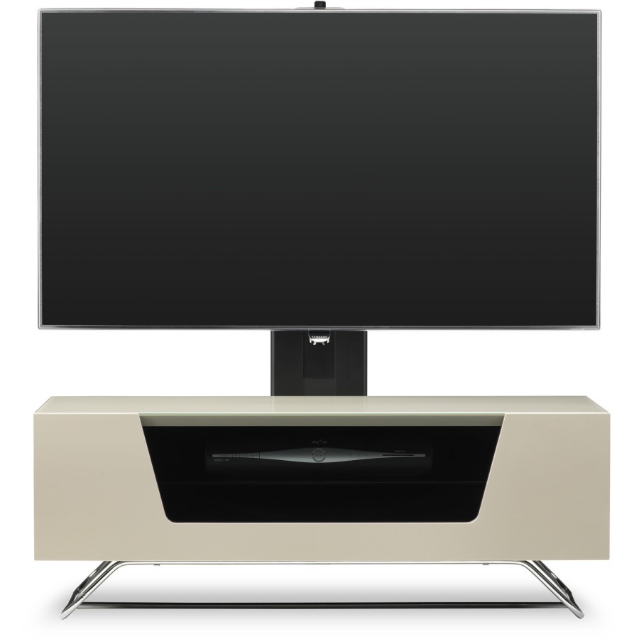 Supported on a stylish chrome base-frame, the Alphason Chromium Colour CRO2-1000BKT-IV Cantilever TV Stand offers a stunning, timeless, yet contemporary look and feel, producing an almost floating appearance to your flat screen television.