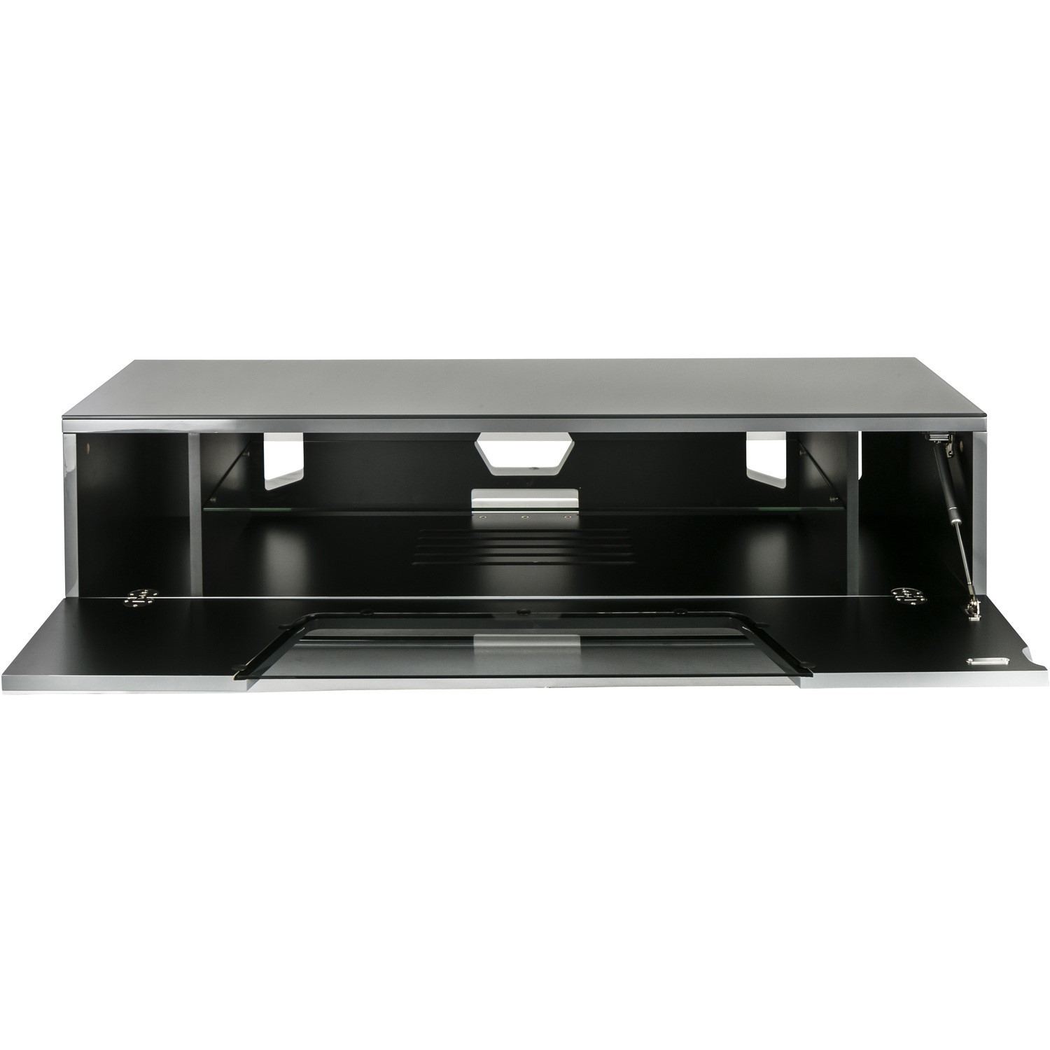 Alphasons new Chromium Colour range of TV Stands offers a stylish and contemporary housing solution for the latest in audio visual technologies. This enclosed high gloss Grey TV Cabinet features a soft closing flip down door with IR friendly transparent glass.