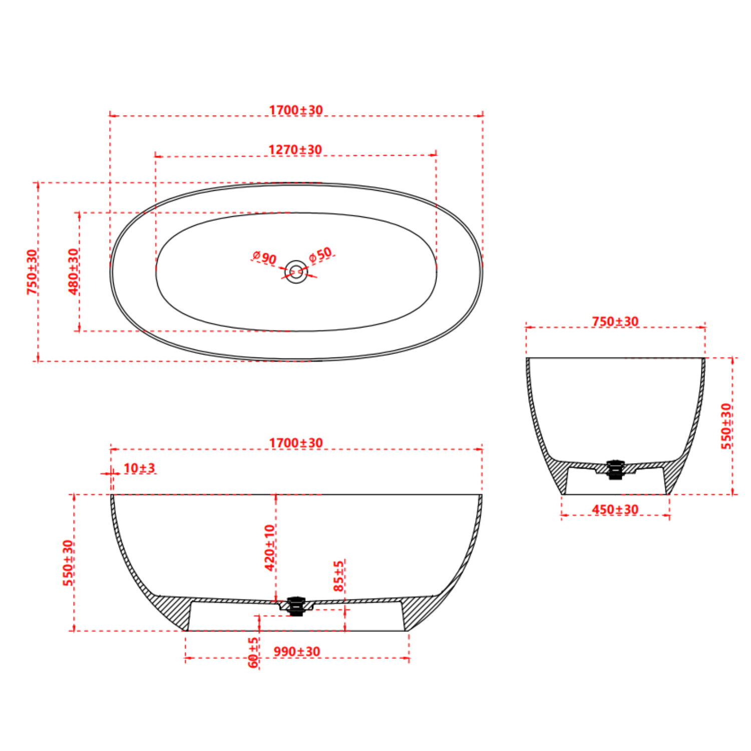 - Bath Weight: 85kg, please make your installer aware of this weight, and ensure your floor can support it. Please also be aware that this is doorstep delivery only.