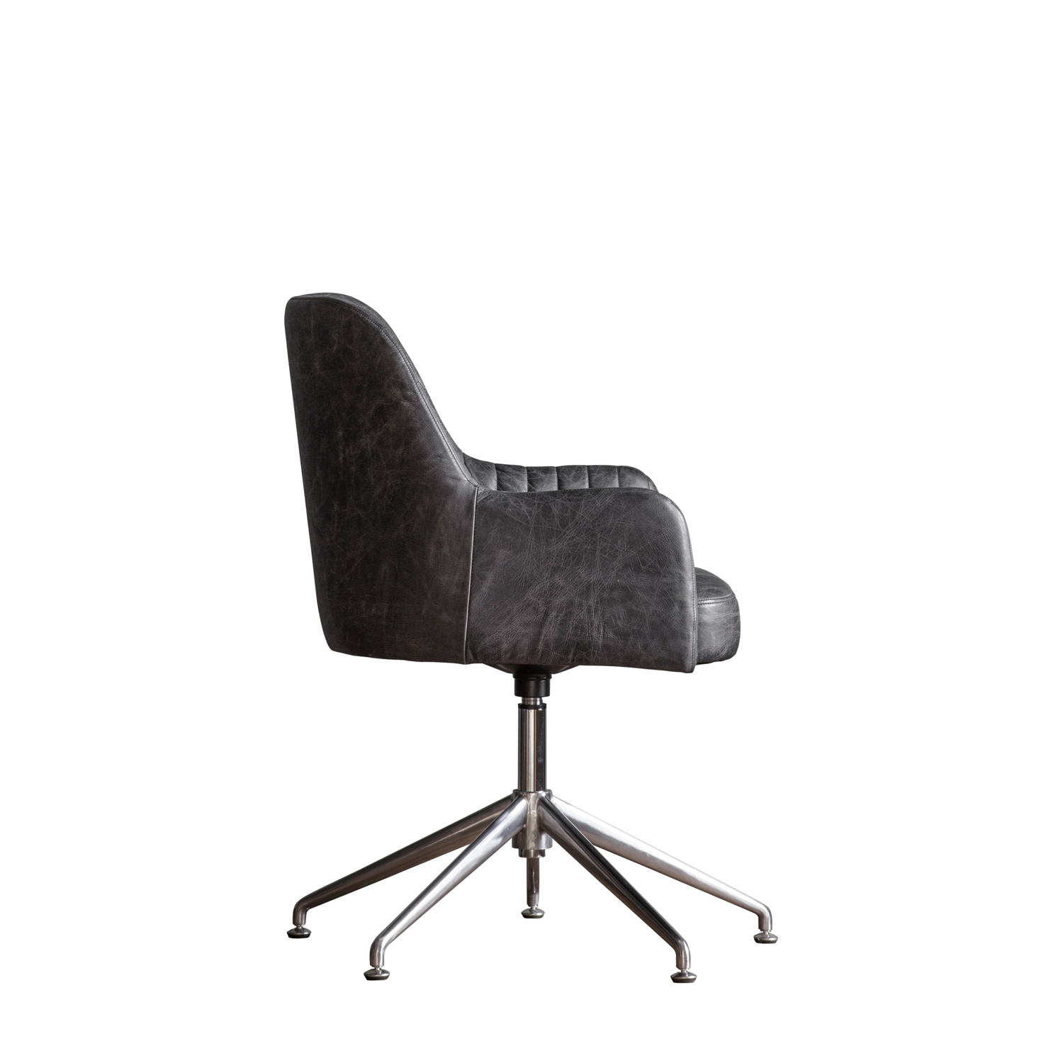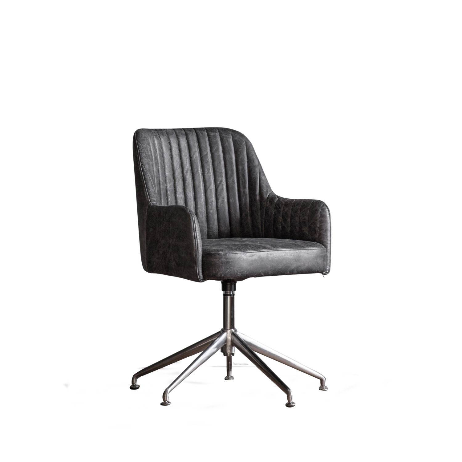 The Curie Swivel Chair in Antique Ebony brings a touch of sophistication and comfort to any workspace or bedroom. Upholstered in premium ribbed ebony faux leather, it combines timeless design with modern functionality. The padded seat and backrest ensure superior comfort for long periods of sitting, while the sleek chrome swivel base adds a contemporary edge. Perfect for both home offices and stylish interiors, this chair balances luxury, practicality, and enduring elegance in one refined piece.