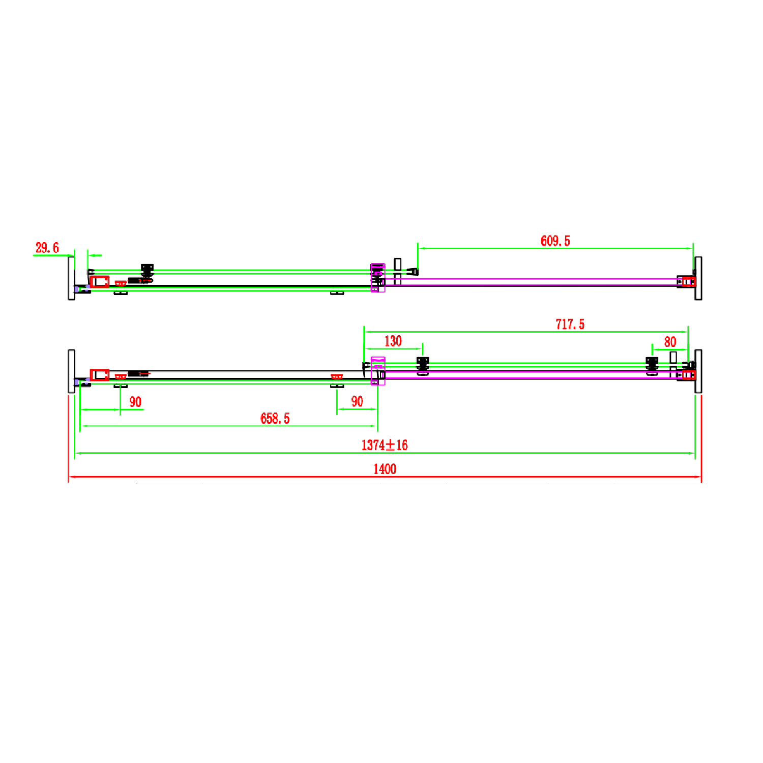 - Adjustment tolerance, width 1358-1390mm and depth 778-790mm