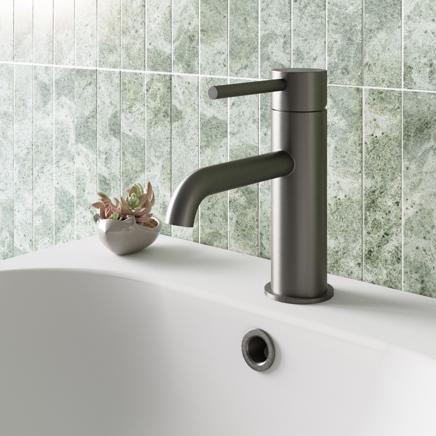 - Featuring a sleek brushed gunmetal grey finish, these taps bring a touch of minimalist modern style to your bathroom