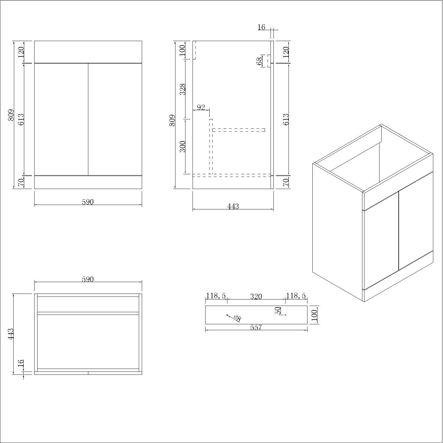 - Cabinet material: MDF