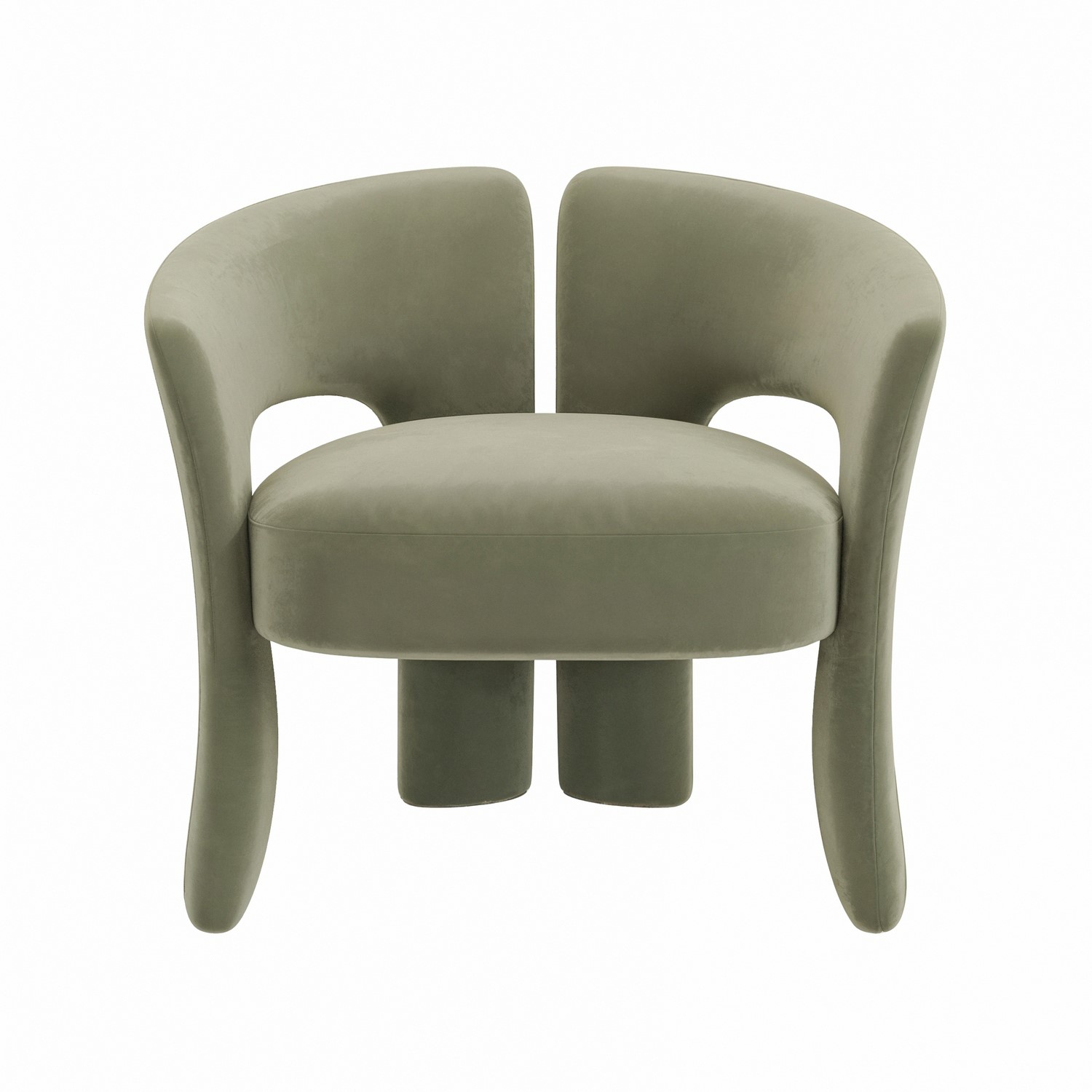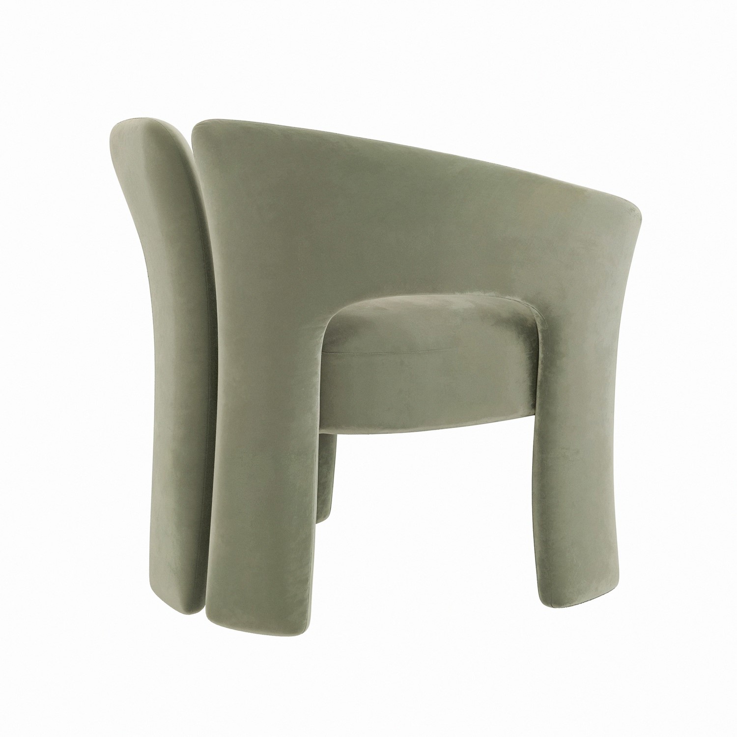 The Azalea Accent Chair is a striking sculptural statement piece that blends modern artistry with everyday comfort. Upholstered in a striking sage green velvet fabric, it brings warmth, texture, and contemporary flair to any living space. Its beautifully curved silhouette and fully upholstered legs create a seamless, organic form that feels both playful and refined. Designed with a supportive foam seat, the Azalea offers a surprisingly comfortable sit despite its bold aesthetic. Perfect for bedrooms, reading corners, or as a standout living-room accent chair, Azalea adds instant personality and tactile charm to your home décor.