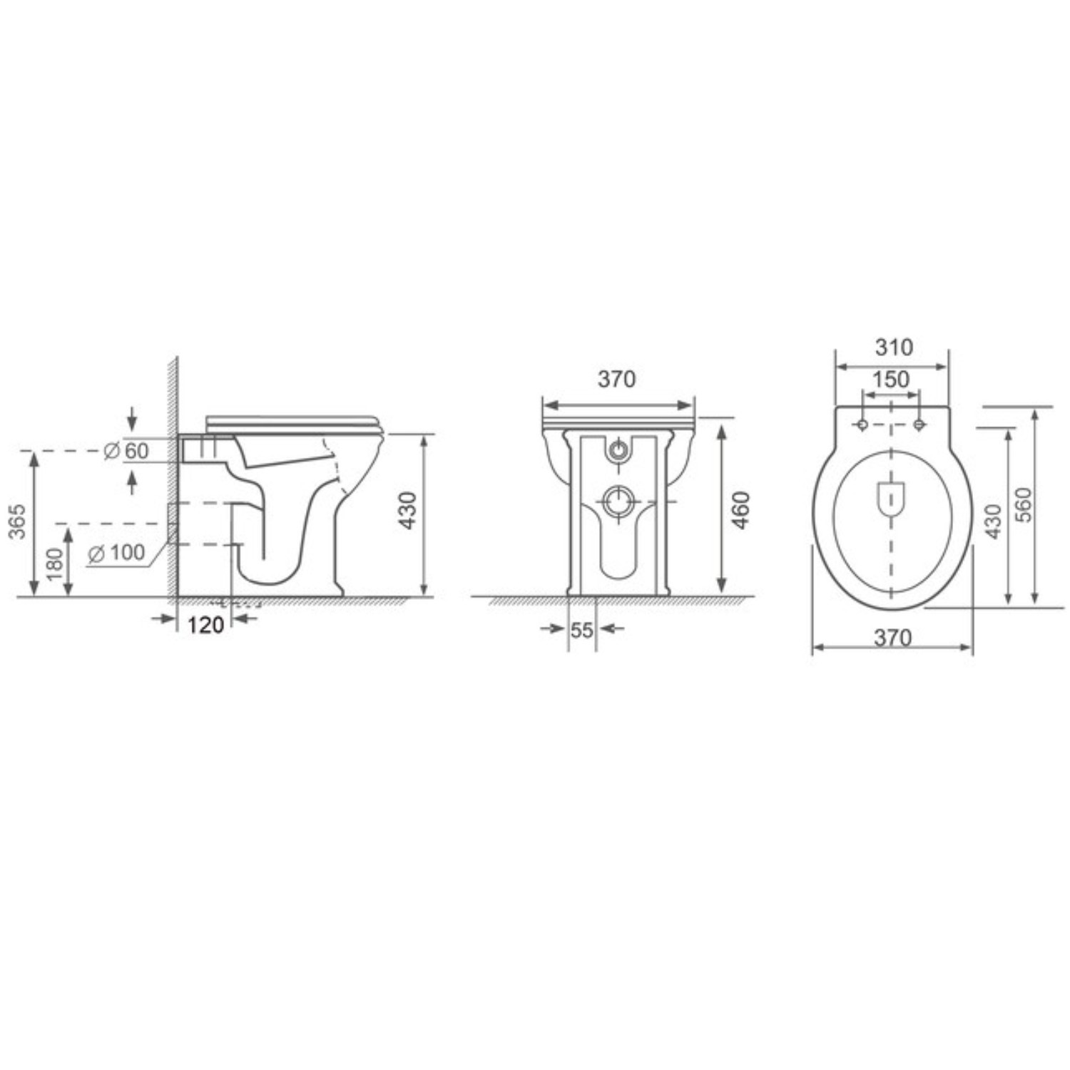 This Ripley back to wall toilet with a round pan traditional design has been manufactured from high-quality ceramic and makes a perfect addition to any bathroom. Thanks to the rimless design when you flush, the water is propelled around the bowl to give it a more thorough clean, it’s also more hygienic. This Ripley back to wall toilet with a uniquely shaped traditional design has been manufactured from high-quality ceramic and makes a perfect addition to any bathroom. A back to the wall toilet is the perfect purchase for those who are limited for space in their bathroom. The cistern is cleverly concealed behind the pan by hiding it behind a unit or wall, thus making the toilet flush to the wall, meaning you won’t have to comprise floor space when installing the toilet. It comes complete with a soft-close toilet seat, this seat adds a touch of quiet comfort, reducing noise and wear over time. The durable construction ensures long-term performance, while the sleek white finish keeps your bathroom looking fresh and clean. The brushed brass hinges add a premium feel to the toilet and match the rest of your bathroom theme.