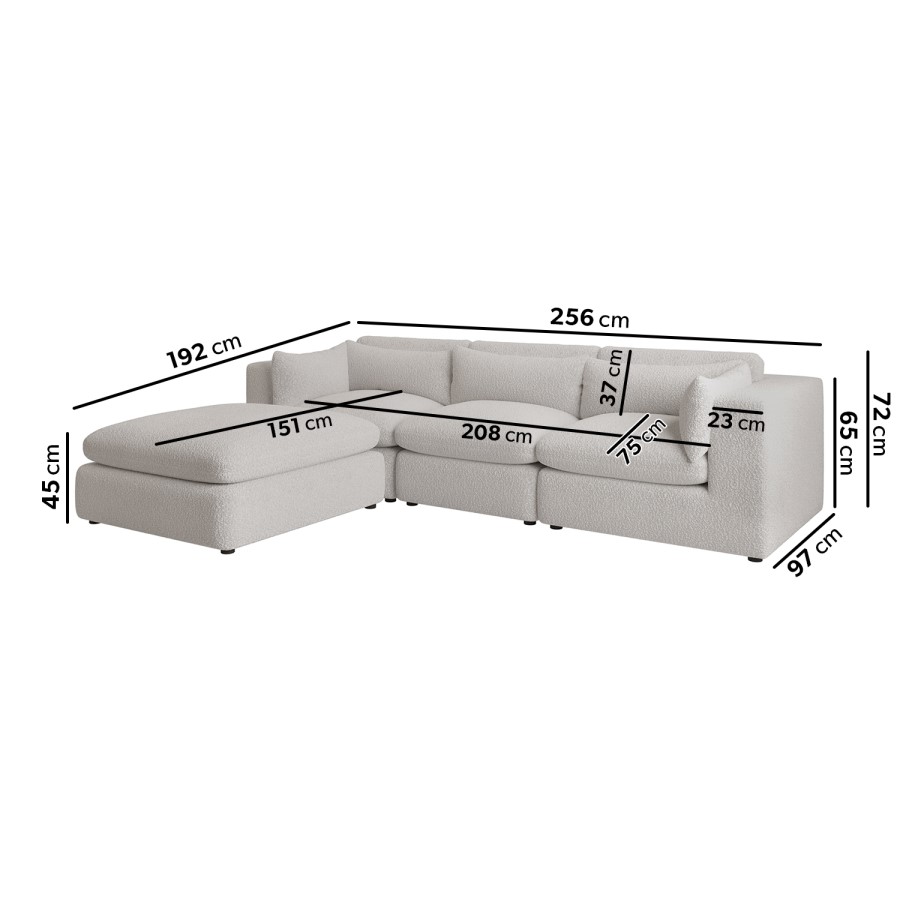 Large Beige Boucle Reversible 4 Seater Chaise Corner Sofa - Hudson